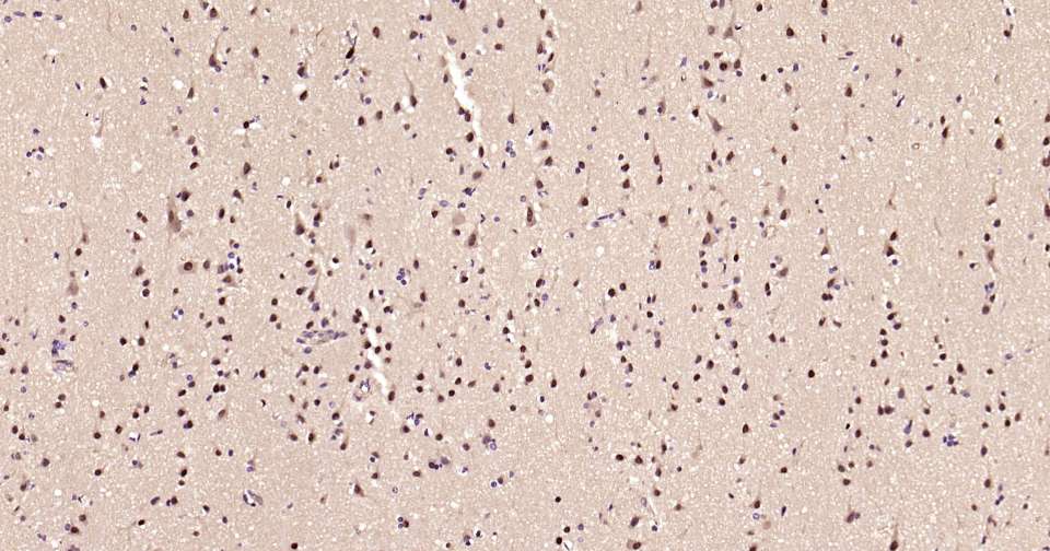 Immunohistochemical analysis of paraffin embedded human brain tissue slide using IHC0404H (Human JNK1/3 IHC Kit).