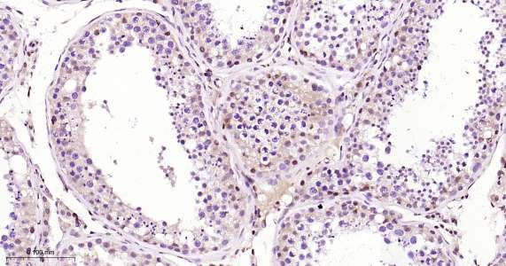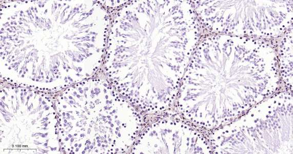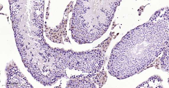 Immunohistochemical analysis of paraffin embedded mouse testis tissue slide using IHC0409 (p27 KIP 1 IHC Kit).