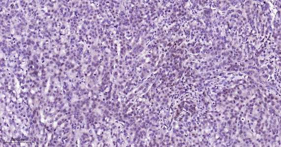 Immunohistochemical analysis of paraffin embedded human ovarian cancer tissue slide using IHC0409H (Human p27 KIP 1 IHC Kit).