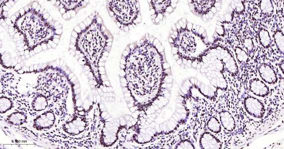 Immunohistochemical analysis of paraffin embedded human small intestine tissue slide using IHC0411H (Human Pokemon/ZBTB7A IHC Kit).