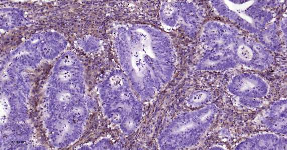 Immunohistochemical analysis of paraffin embedded human colon cancer tissue slide using IHC0415 (CRMP2 IHC Kit).