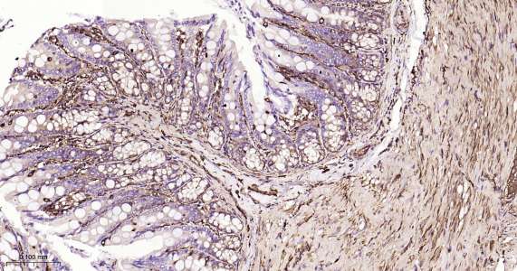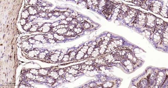 Immunohistochemical analysis of paraffin embedded mouse colon tissue slide using IHC0415 (CRMP2 IHC Kit).