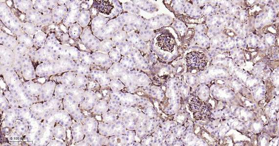 Immunohistochemical analysis of paraffin embedded mouse kidney tissue slide using IHC0415M (Mouse CRMP2 IHC Kit).
