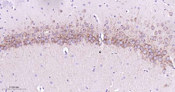 Immunohistochemical analysis of paraffin embedded mouse brain tissue slide using IHC0420 (IP3 receptor IHC Kit).
