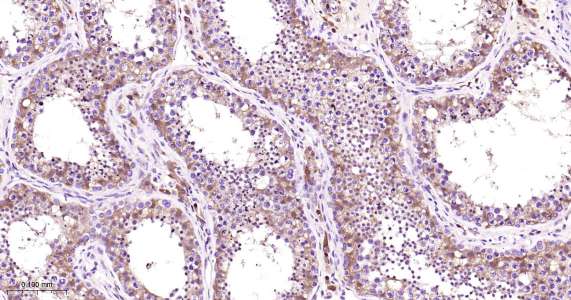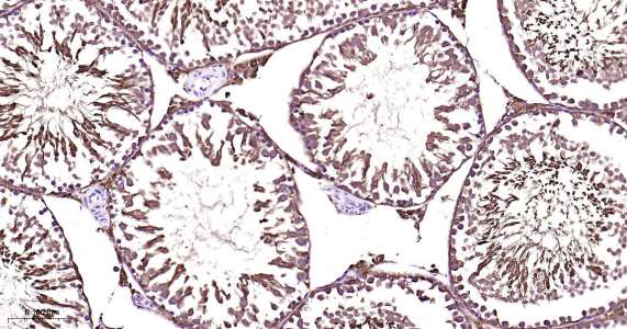 Immunohistochemical analysis of paraffin embedded mouse testis tissue slide using IHC0422 (PBP IHC Kit).