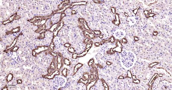 Immunohistochemical analysis of paraffin embedded rat kidney tissue slide using IHC0422R (Rat PBP IHC Kit).