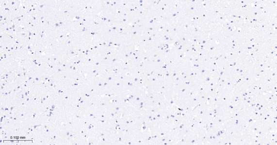 Immunohistochemical analysis of paraffin embedded human brain tissue slide using IHC0435H (Human Arginase 1 IHC Kit).