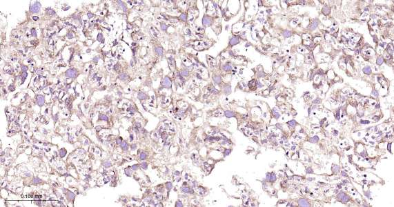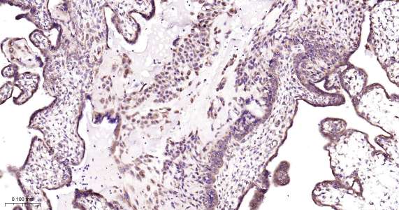 Immunohistochemical analysis of paraffin embedded human placenta tissue slide using IHC0447 (RPS20 IHC Kit).