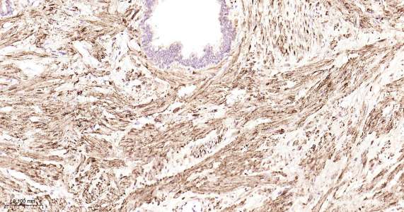 Immunohistochemical analysis of paraffin embedded human prostate cancer tissue slide using IHC0450 (Tyrosine Hydroxylase IHC Kit).