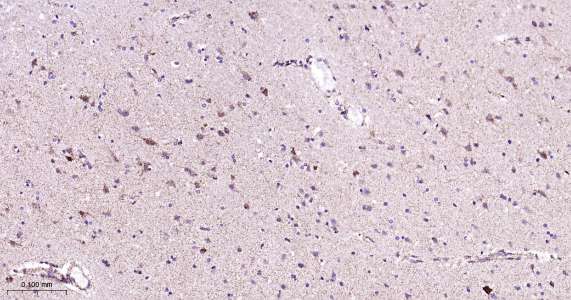 Immunohistochemical analysis of paraffin embedded human brain tissue slide using IHC0454 (COX4I1 IHC Kit).