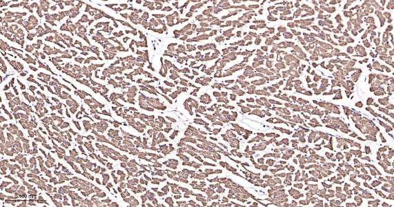 Immunohistochemical analysis of paraffin embedded human heart tissue slide using IHC0454H (Human COX4I1 IHC Kit).
