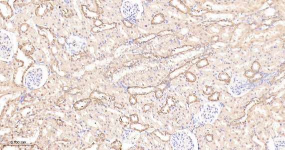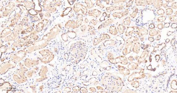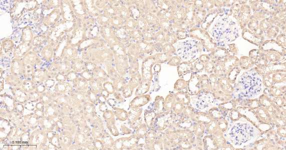 Immunohistochemical analysis of paraffin embedded mouse kidney tissue slide using IHC0456 (UBA1 IHC Kit).