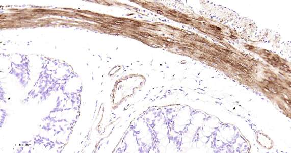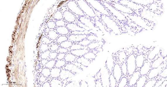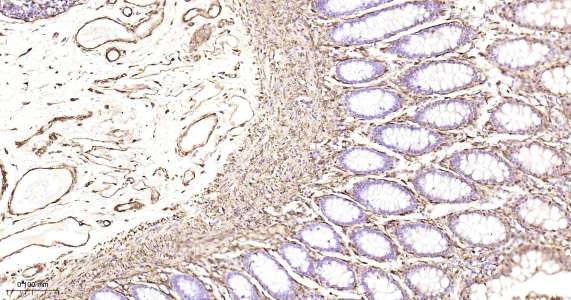 Immunohistochemical analysis of paraffin embedded mouse colon tissue slide using IHC0458 (Hsp27 IHC Kit).