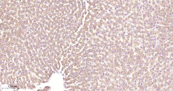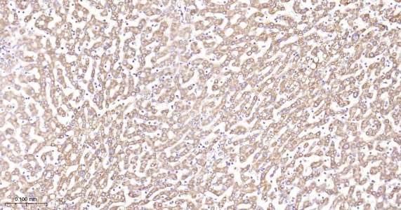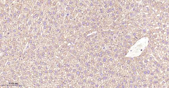 Immunohistochemical analysis of paraffin embedded mouse liver tissue slide using IHC0461 (PHB1 IHC Kit).