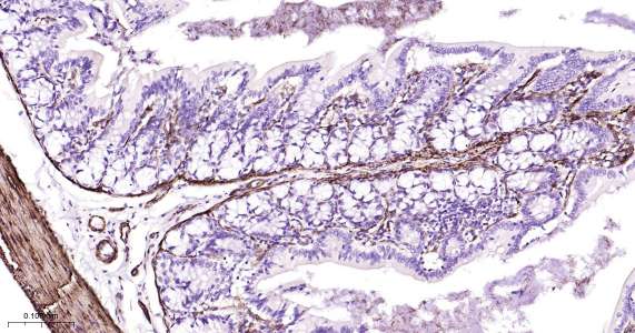 Immunohistochemical analysis of paraffin embedded mouse stomach tissue slide using IHC0473 (Vinculin IHC Kit).