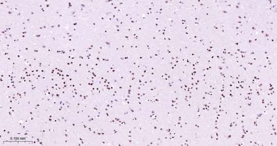Immunohistochemical analysis of paraffin embedded human brain tissue slide using IHC0482 (Phospho-STAT5A (Y694) IHC Kit).