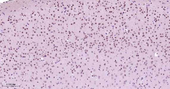 Immunohistochemical analysis of paraffin embedded mouse brain tissue slide using IHC0482 (Phospho-STAT5A (Y694) IHC Kit).