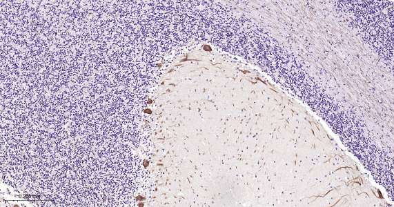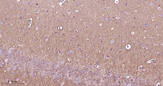 Immunohistochemical analysis of paraffin embedded mouse brain tissue slide using IHC0485 (PKC gamma IHC Kit).