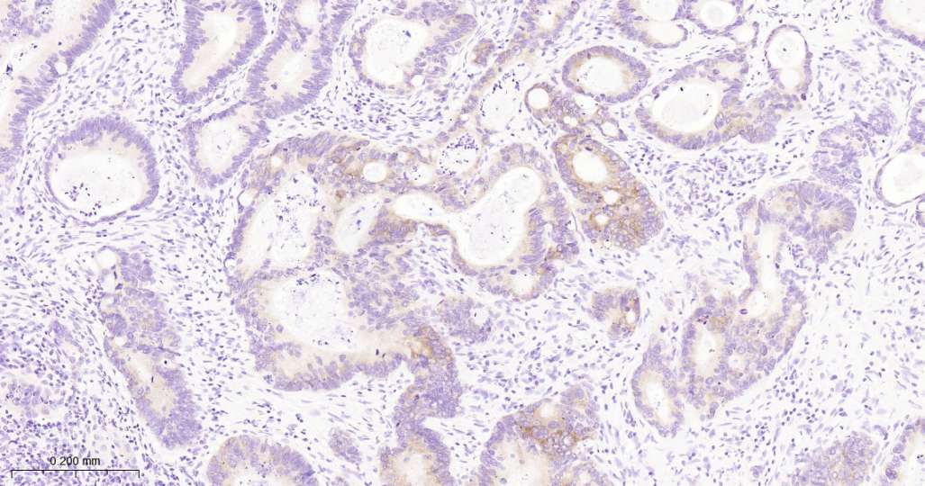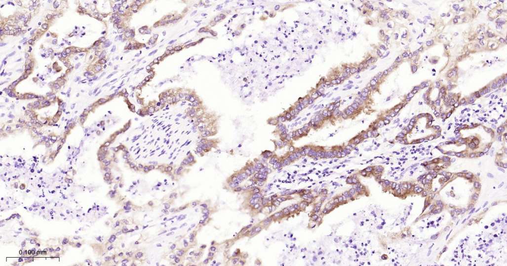 Immunohistochemical analysis of paraffin embedded Human pancreatic cancer tissue slide using IHC0504H (Human IMP3 Kit).