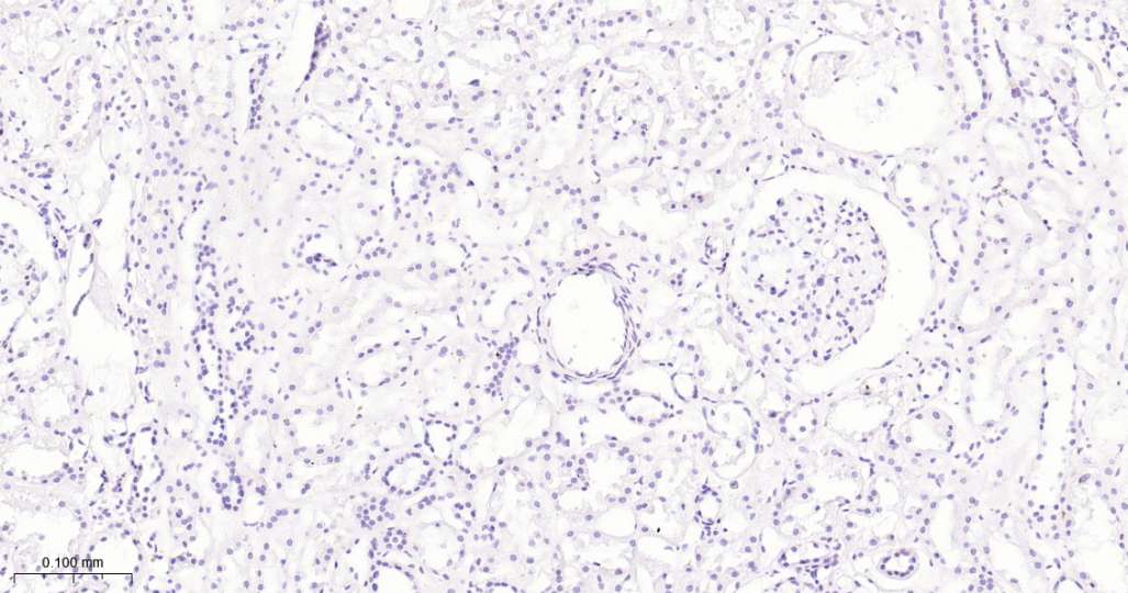 Immunohistochemical analysis of paraffin embedded Human kidney tissue slide using IHC0504H (Human IMP3 Kit).