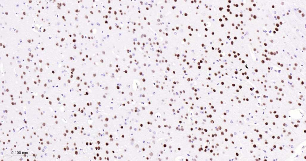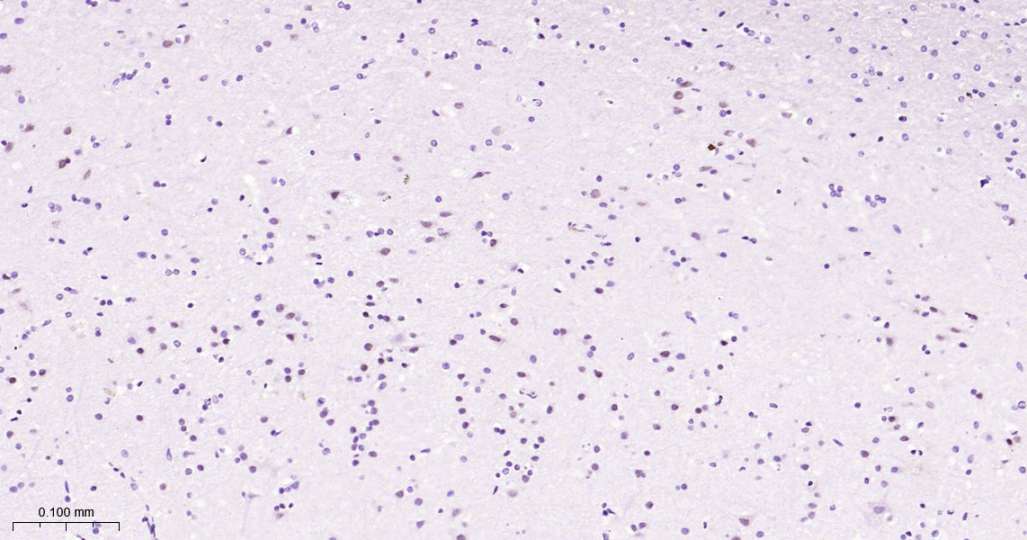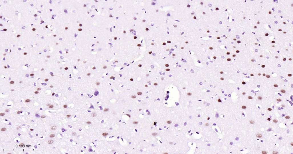 Immunohistochemical analysis of paraffin embedded Human brain tissue slide using IHC0506 (SATB2 Kit).