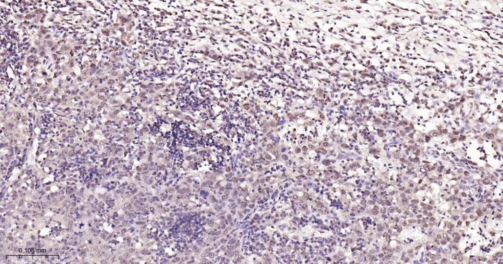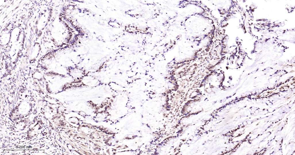 Immunohistochemical analysis of paraffin embedded Human gastric cancer tissue slide using IHC0513H (Human NUMA1 Kit).