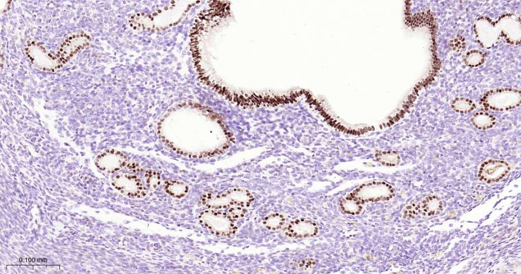 Immunohistochemical analysis of paraffin embedded Mouse uterus tissue slide using IHC0514 (PAX8 Kit).