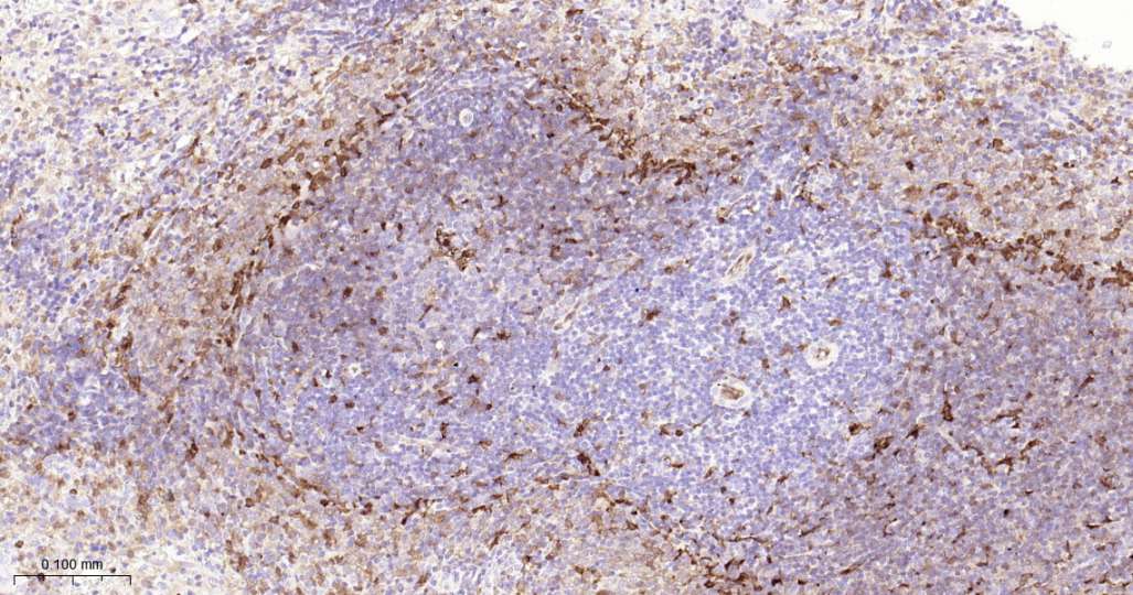 Immunohistochemical analysis of paraffin embedded Rat spleen tissue slide using IHC0550R (Rat CD16 Kit).