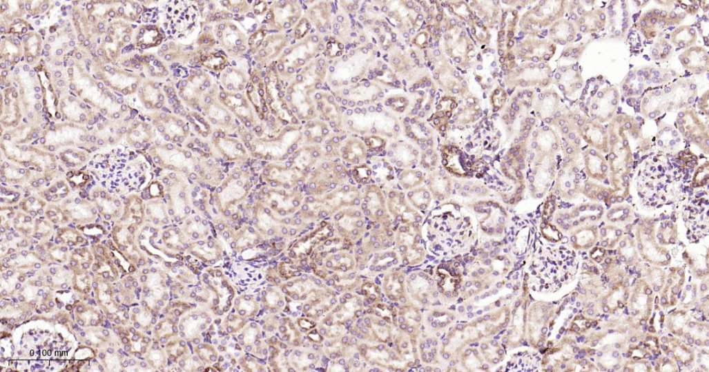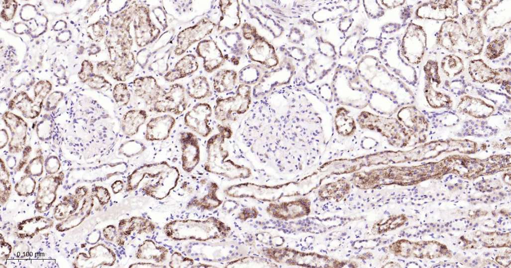 Immunohistochemical analysis of paraffin embedded Mouse kidney tissue slide using IHC0551 (GRP94 Kit).