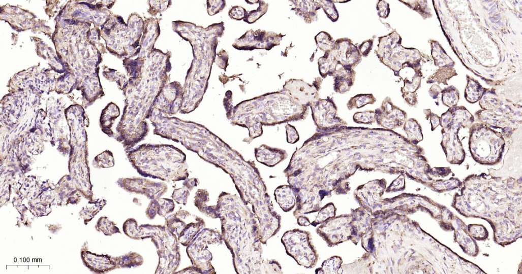 Immunohistochemical analysis of paraffin embedded Human placenta tissue slide using IHC0551 (GRP94 Kit).