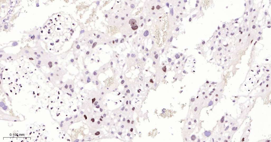 Immunohistochemical analysis of paraffin embedded Human placenta tissue slide using IHC0552 (Dnmt1 Kit).