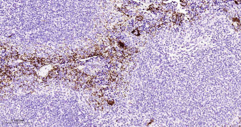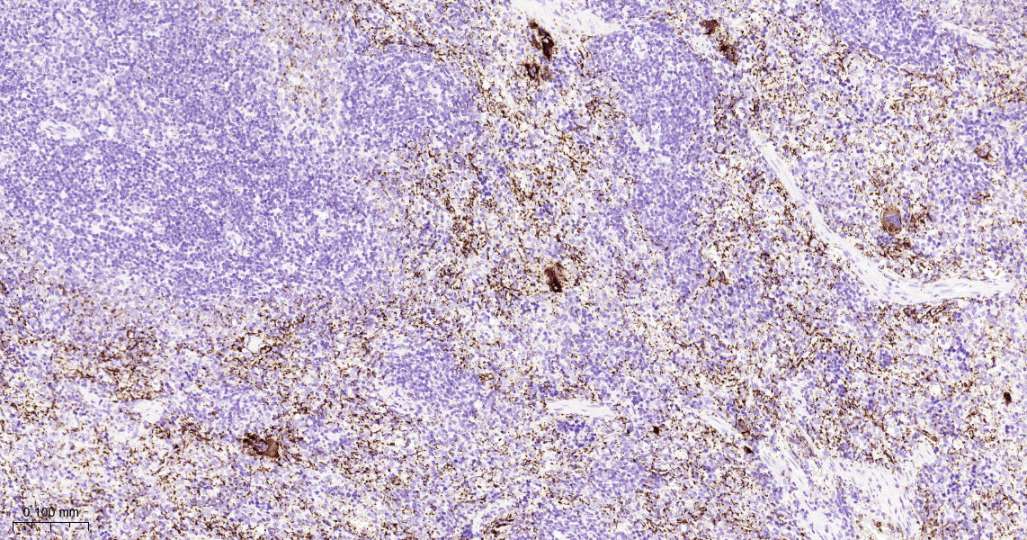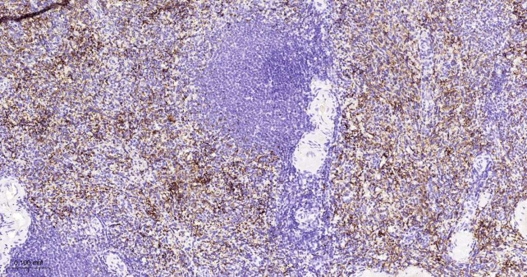 Immunohistochemical analysis of paraffin embedded Human spleen tissue slide using IHC0557 (GP1BA Kit).