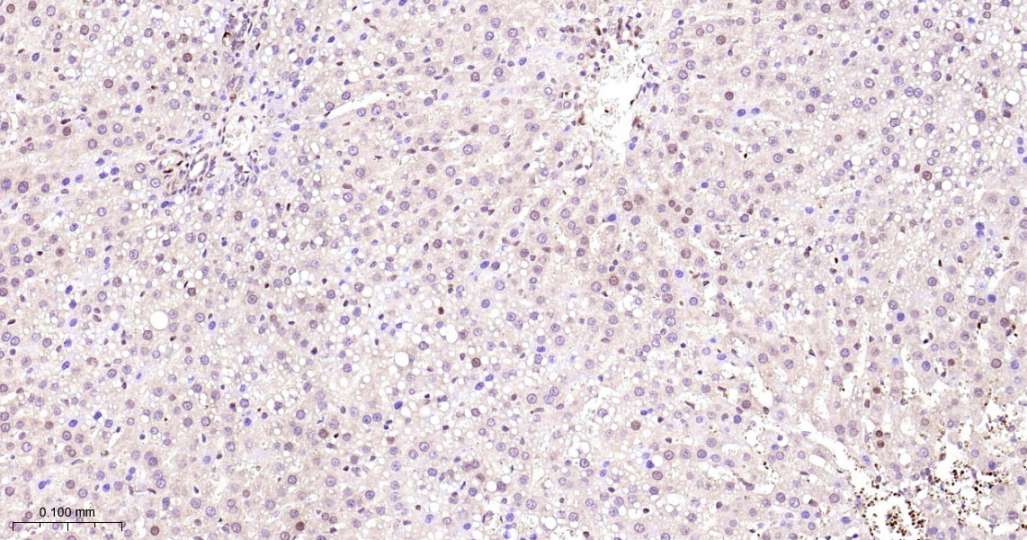 Immunohistochemical analysis of paraffin embedded Rat liver tissue slide using IHC0558R (Rat CDK4 Kit).
