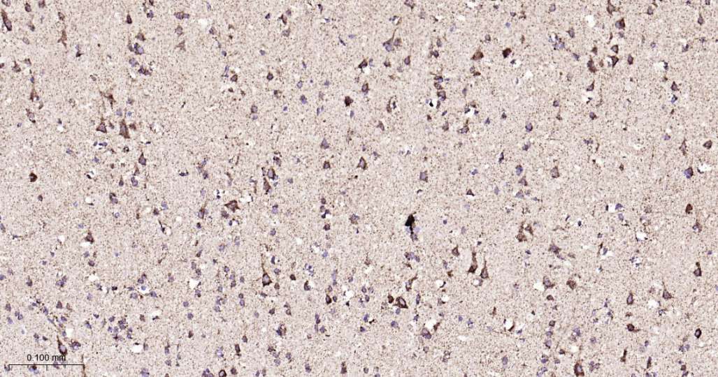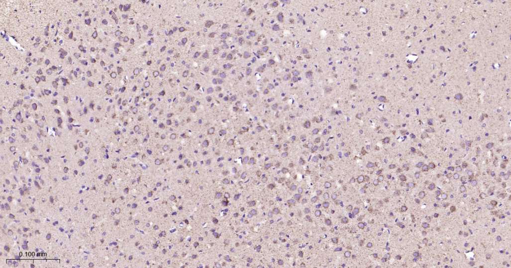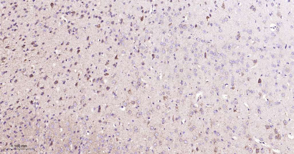 Immunohistochemical analysis of paraffin embedded Mouse brain tissue slide using IHC0559 (Hsp10 Kit).