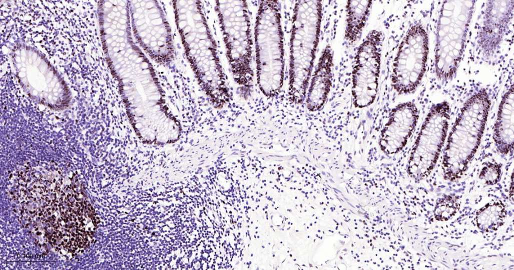 Immunohistochemical analysis of paraffin embedded Human colon tissue slide using IHC0561 (KAT1 Kit).