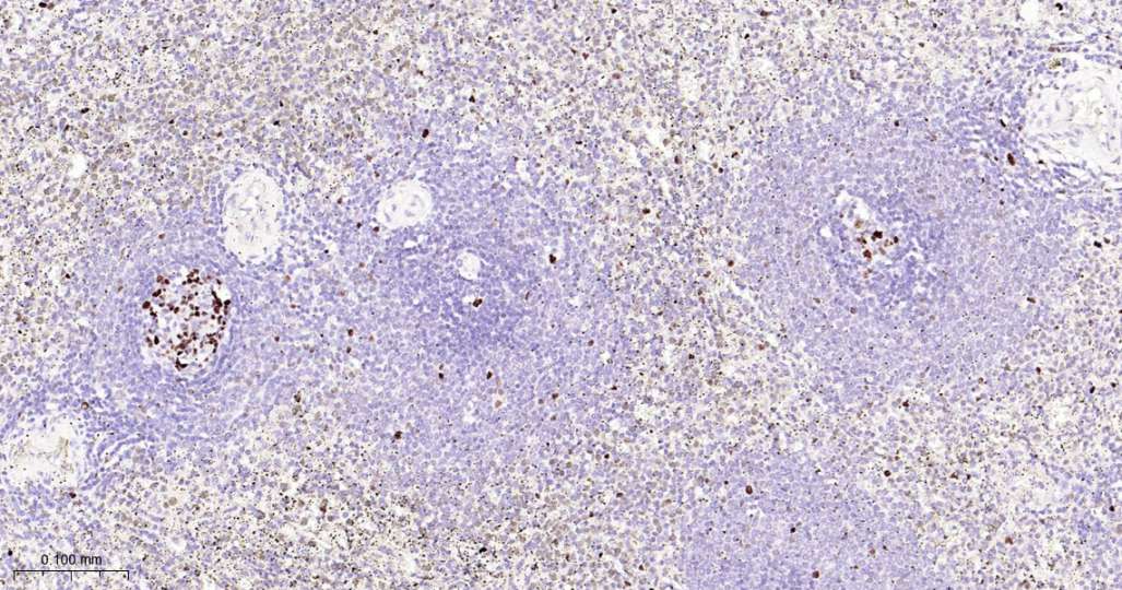 Immunohistochemical analysis of paraffin embedded Mouse spleen tissue slide using IHC0561 (KAT1 Kit).
