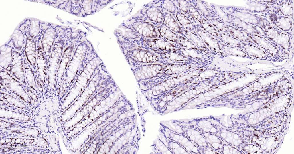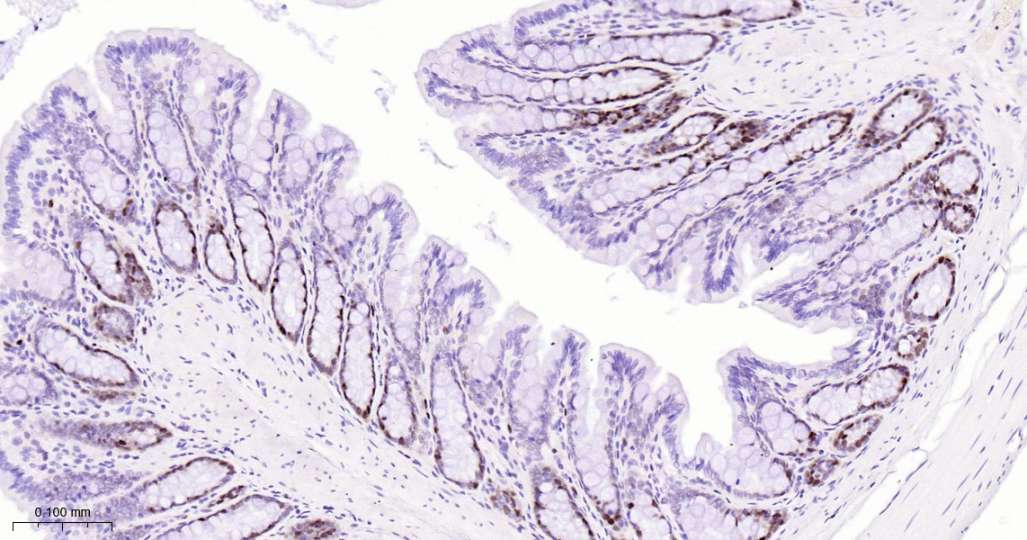 Immunohistochemical analysis of paraffin embedded Mouse colon tissue slide using IHC0561 (KAT1 Kit).