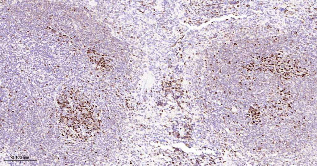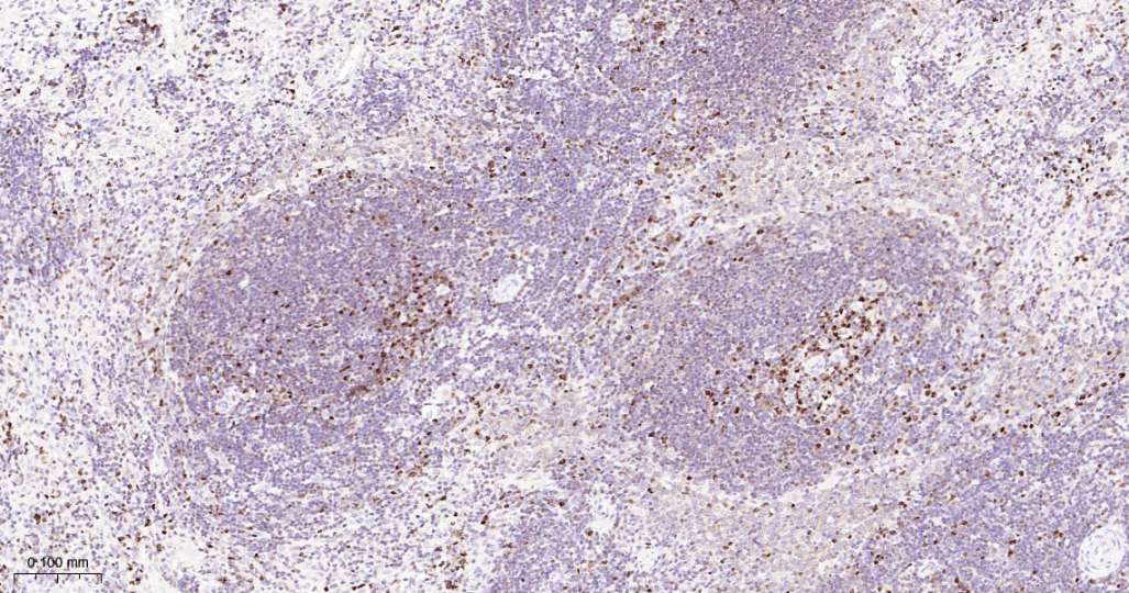Immunohistochemical analysis of paraffin embedded Human spleen tissue slide using IHC0561 (KAT1 Kit).