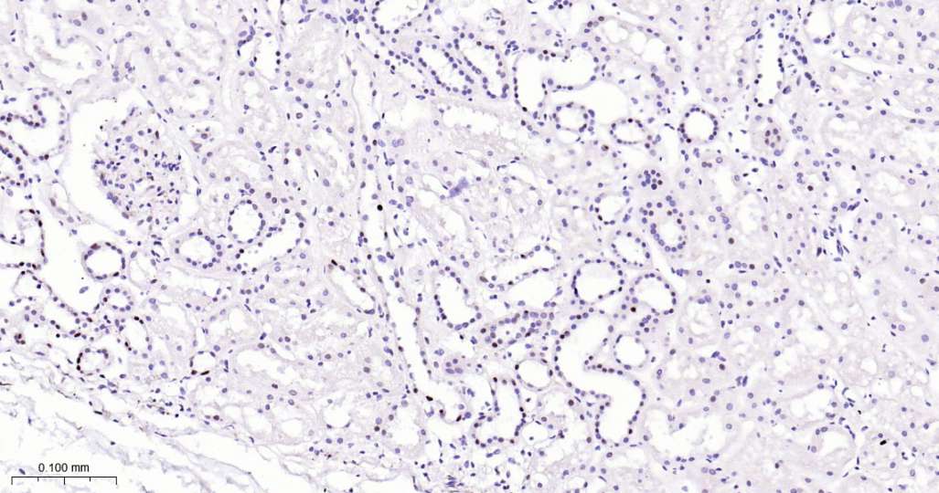 Immunohistochemical analysis of paraffin embedded Human kidney tissue slide using IHC0561H (Human KAT1 Kit).