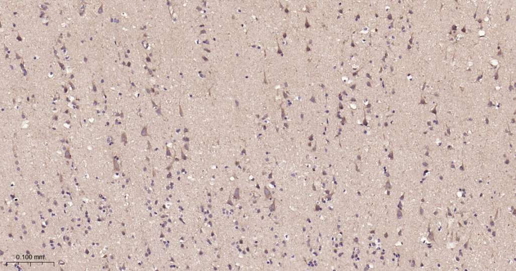 Immunohistochemical analysis of paraffin embedded Human brain tissue slide using IHC0569H (Human LRP1 Kit).