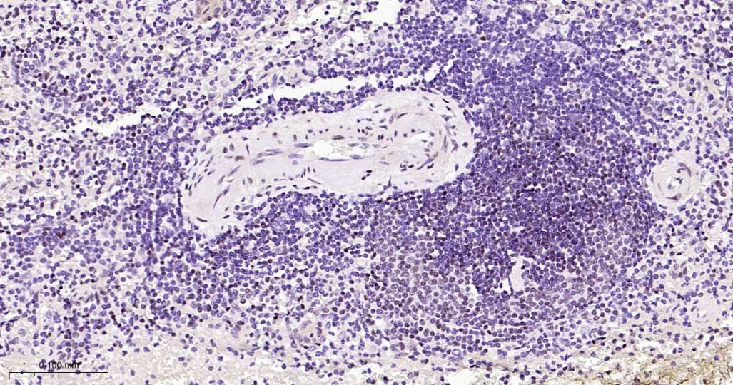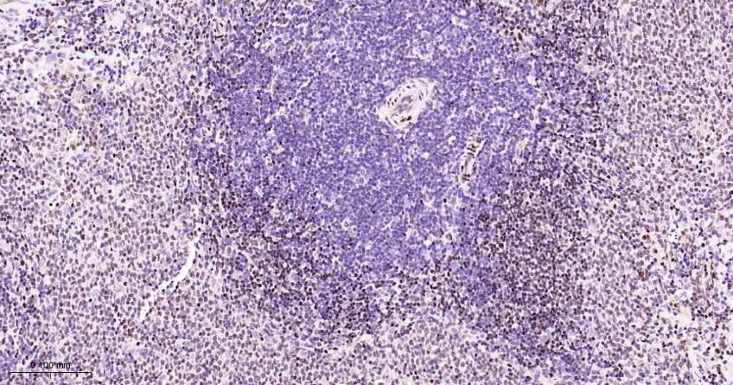 Immunohistochemical analysis of paraffin embedded Human spleen tissue slide using IHC0581 (MEF2A/MEF2C Kit).
