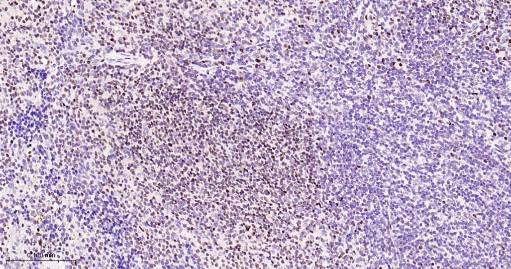 Immunohistochemical analysis of paraffin embedded Mouse spleen tissue slide using IHC0581 (MEF2A/MEF2C Kit).