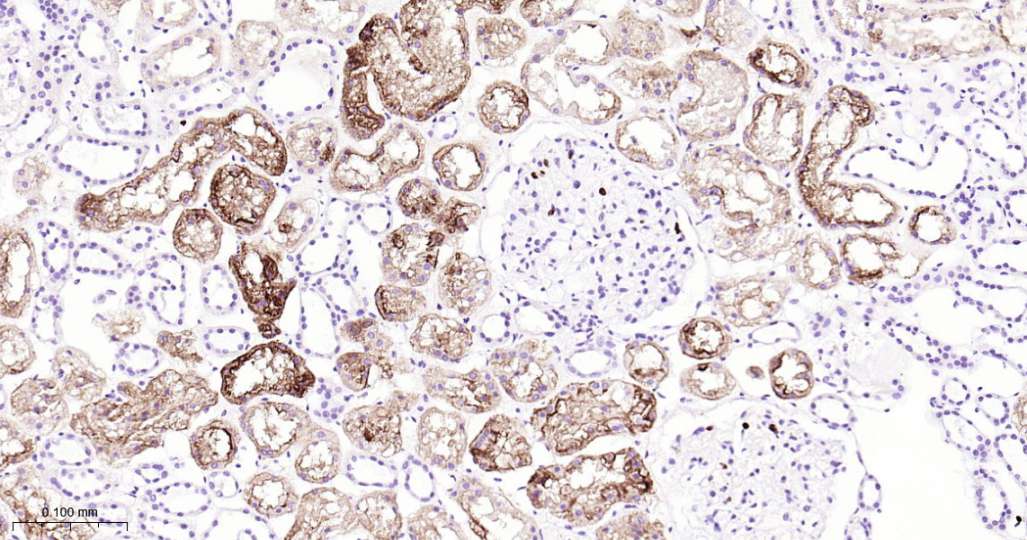 Immunohistochemical analysis of paraffin embedded Human kidney tissue slide using IHC0586 (CD15/SSEA1 Kit).