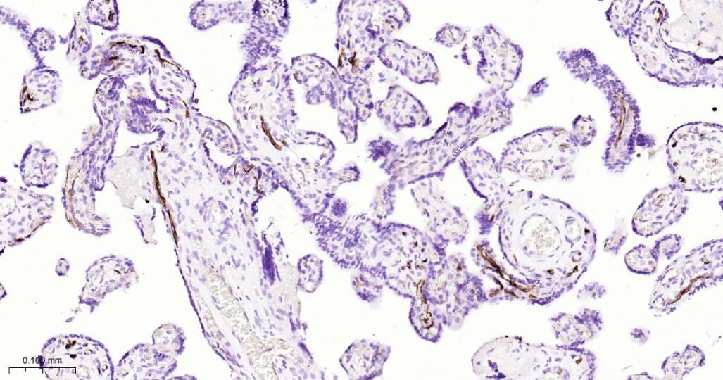 Immunohistochemical analysis of paraffin embedded Human placenta tissue slide using IHC0586 (CD15/SSEA1 Kit).