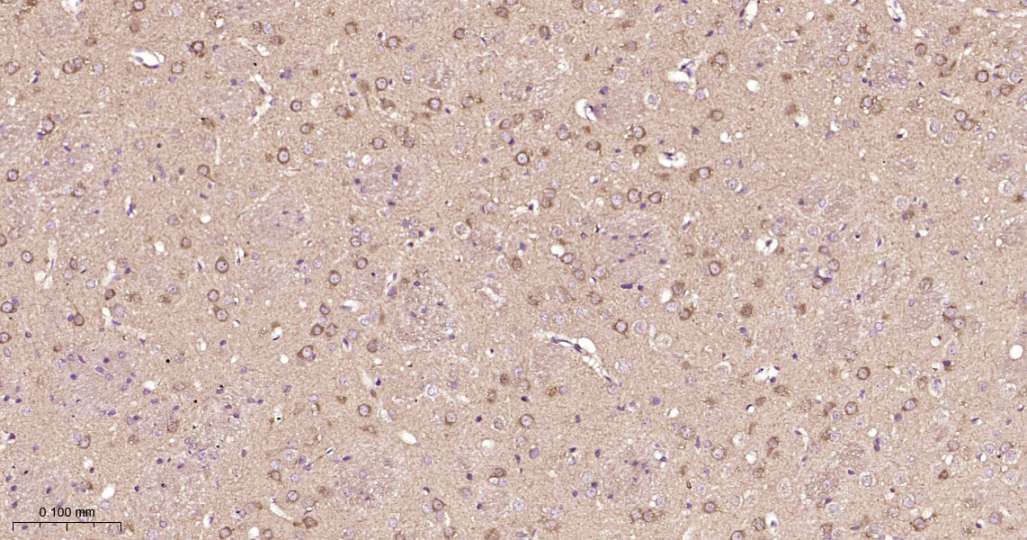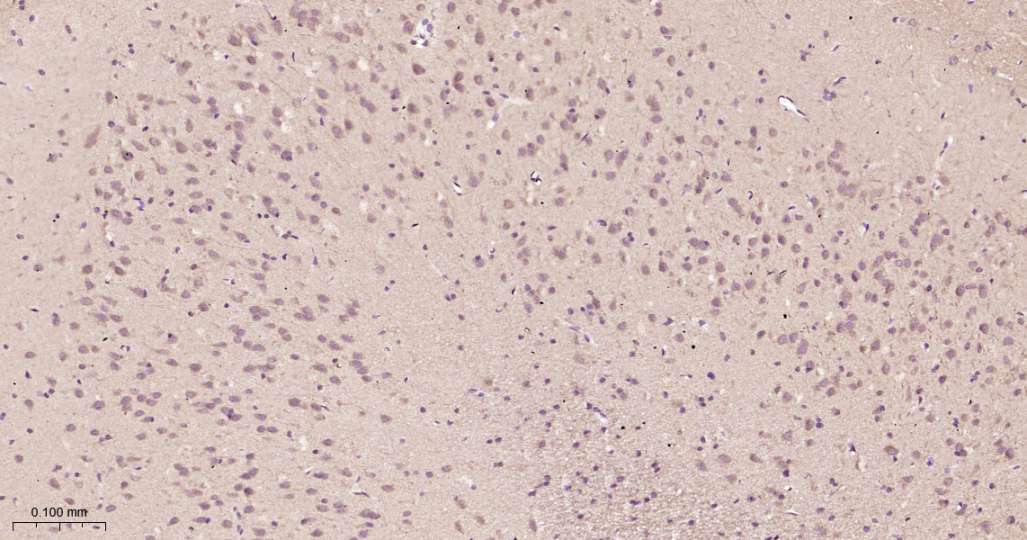 Immunohistochemical analysis of paraffin embedded Mouse brain tissue slide using IHC0587 (GCS beta 1 Kit).
