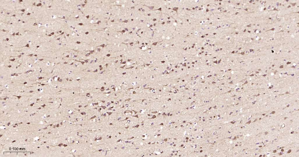 Immunohistochemical analysis of paraffin embedded Human brain tissue slide using IHC0591 (HSP90 beta Kit).