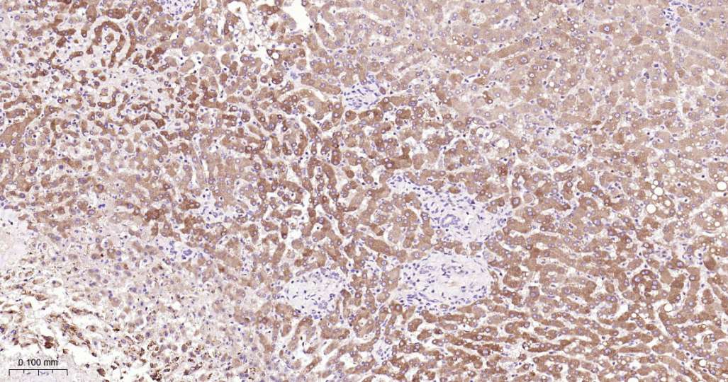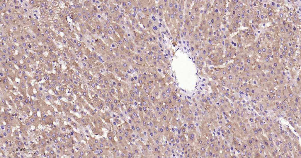 Immunohistochemical analysis of paraffin embedded Mouse liver tissue slide using IHC0597 (TNS4 Kit).
