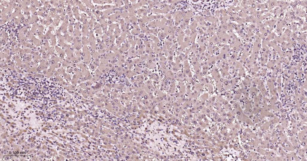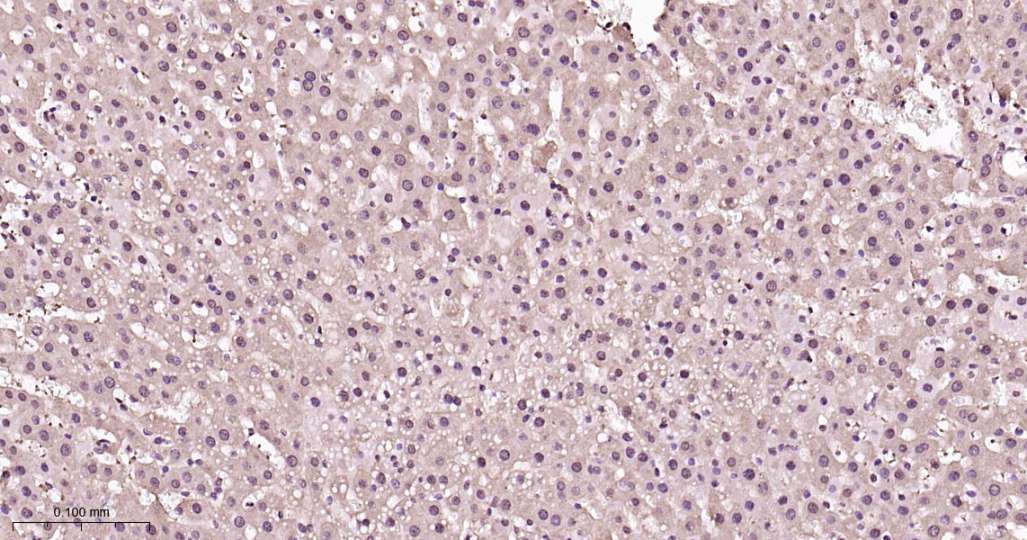 Immunohistochemical analysis of paraffin embedded Human liver tissue slide using IHC0603 (PSMA1 Kit).