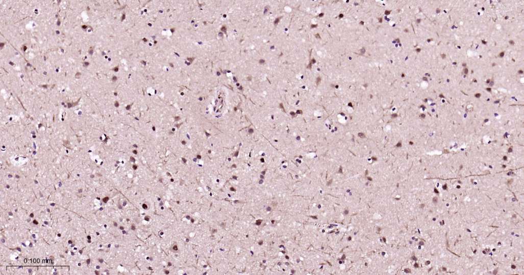 Immunohistochemical analysis of paraffin embedded Human brain tissue slide using IHC0603 (PSMA1 Kit).