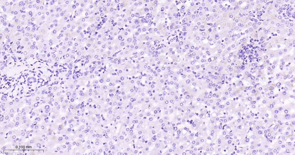 Immunohistochemical analysis of paraffin embedded Human liver tissue slide using IHC0606H (Human ACTH Kit).